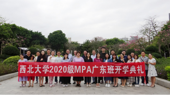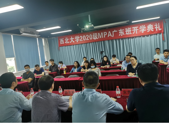 长安秋爽,羊城穗香,2020年10月17日上午,西北大学MPA2020级广东班开学典礼在广州天河区隆重举行,565net必赢客户端党委书记孙录见,副院长靳洪涛,院长助理、MPA中心副主任岳成浩、广东教学中心负责人以及2020级广东班全体新生参加。