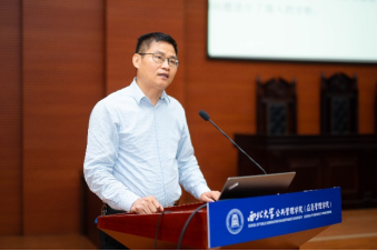 北京大学政府管理学院副院长黄璜教授作了题为《数字治理研究与新文科建设》的报告。首先,黄院长介绍了北京大学成立数字治理研究中心的具体情况,分析了以数字化转型整体驱动生产方式、生活方式和治理方式变革是未来数字治理研究的重点。然后,黄院长指出公共管理实践越来越依托于数字技术的应用,公共管理研究必须回应数字时代的治理问题。最后,黄院长认为公共管理学科可以整合碎片化的数字治理研究,发展数字政府与大数据实验平台,多方共同探索政、产、教、研协同机制,推动学术科研成果和政策咨询服务相互转化,促进学术前沿与国家战略紧密结合。