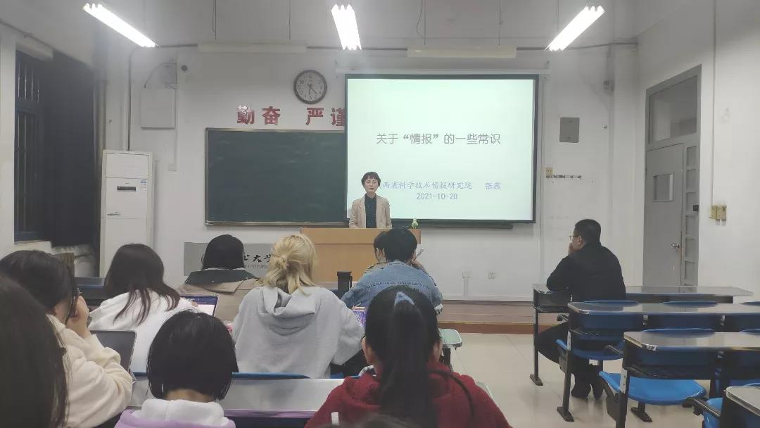 2021年10月20日晚,省科技情报研究院院长张薇受邀为西北大学565net必赢2021级图档大类新生作情报学专题讲座,此次讲座由我院公共信息资源管理系崔旭老师与王铮老师共同主持,以《关于“情报”的一些常识》为题,以情报学与情报工作的沿革为线索,旨在通过实例剖析和价值解读从宏观视野拓宽学生视野、提升专业素质,为同学提供了解专业的新窗口。