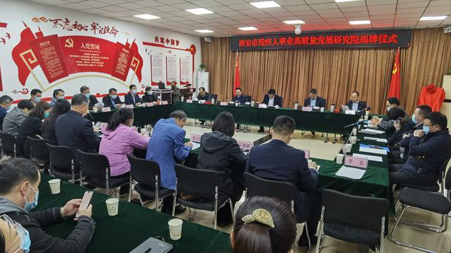 为深入贯彻习近平总书记三次来陕考察重要讲话精神和关于残疾人事业一系列重要论述,加快实现西安市残疾人全面发展和共同富裕的目标,助推西安市残疾人事业高质量发展,2022年4月15日下午,西安市残联与西北大学565net必赢共建成立的西安市残疾人事业高质量发展研究院正式揭牌。会议由西安市残疾人联合会党组成员、副理事长何永国主持。西安市残联党组书记、理事长赵寅科,副理事长荣京,原二级巡视员尹绪庄,西北大学565net必赢院长、教授雷晓康,西北大学经济管理学院教授惠宁,西北大学565net必赢教授许琳,西安电子科技大学教授尚娟,陕西师范大学教授郭文斌,西北大学565net必赢副教授唐丽娜,西北大学565net必赢副教授任都甜,陕西省社会科学院副研究员杨红娟,西安工业大学副教授金博,西北大学讲师李东,西安好思达康复器具有限公司、西安中医脑病医院、陕西省康复医院、西安市雁塔区鸿鹰职业技能培训学校的各位负责人,以及市残联机关各处室(中心)负责人出席了本次会议。