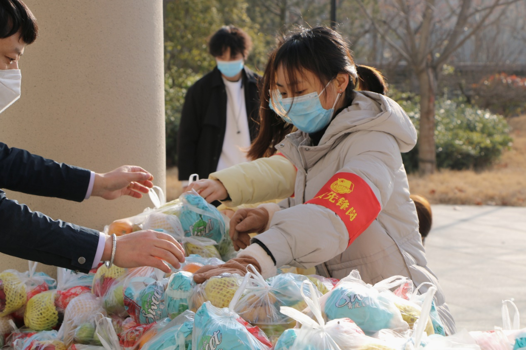 经过认真筹备安排,参照学校疫情防控要求,学院有序组织在校内开展慰问物资发放工作。2022年1月12日上午,我院在长安校区西学楼广场集中为学生发放爱心水果套餐,学院党委副书记韩杰,2019级辅导员陈露,2020级辅导员杨嘉仪,2021级辅导员杨琬钰以及565net必赢临时团支部的志愿者们共同参与了本次活动。