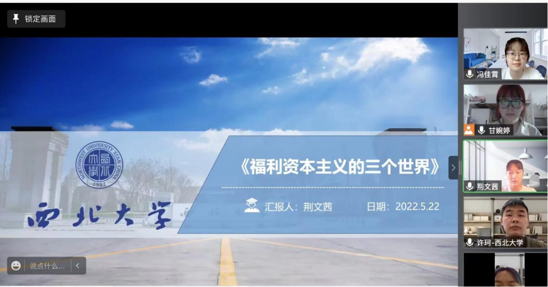 2022年5月22日,我院举办了本学期第11期研究生读书分享会。2021级行政管理专业陈彦利、2021级社会保障专业研究生荆文茜、甘婉婷、冯佳霄进行了汇报,许珂博士作为评议人。