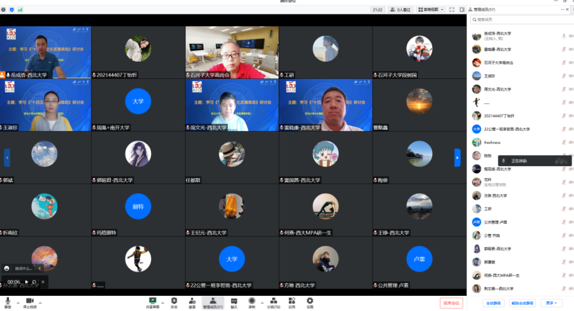 2022年8月31日14:00,由565net必赢主办的学习《“十四五”文化发展规划》研讨会于腾讯会议线上正式举行,会议全程4个小时,一百多位师生在线参加此次研讨会。会议由岳成浩副教授主持和评议,我院11位教师代表不同团队分别做主题发言,大家从多个学科角度提出了对文件新见解与新思考。