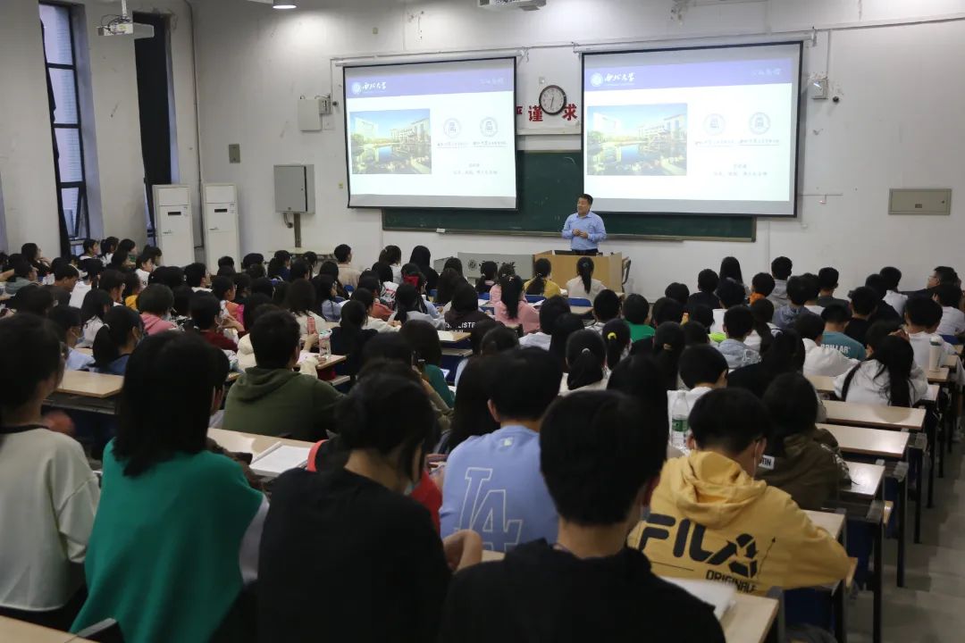 为帮助新生更好地适应大学学习生活,找准自身定位,明确未来规划,565net必赢2022级新生专业导读课于9月21日晚18:30在1J301教室开讲。雷晓康院长以生动的方式与幽默的风格,为我院全体本科新生讲述了第一节新生专业导读课程,并表达了对新生们的热烈欢迎与殷切期待。