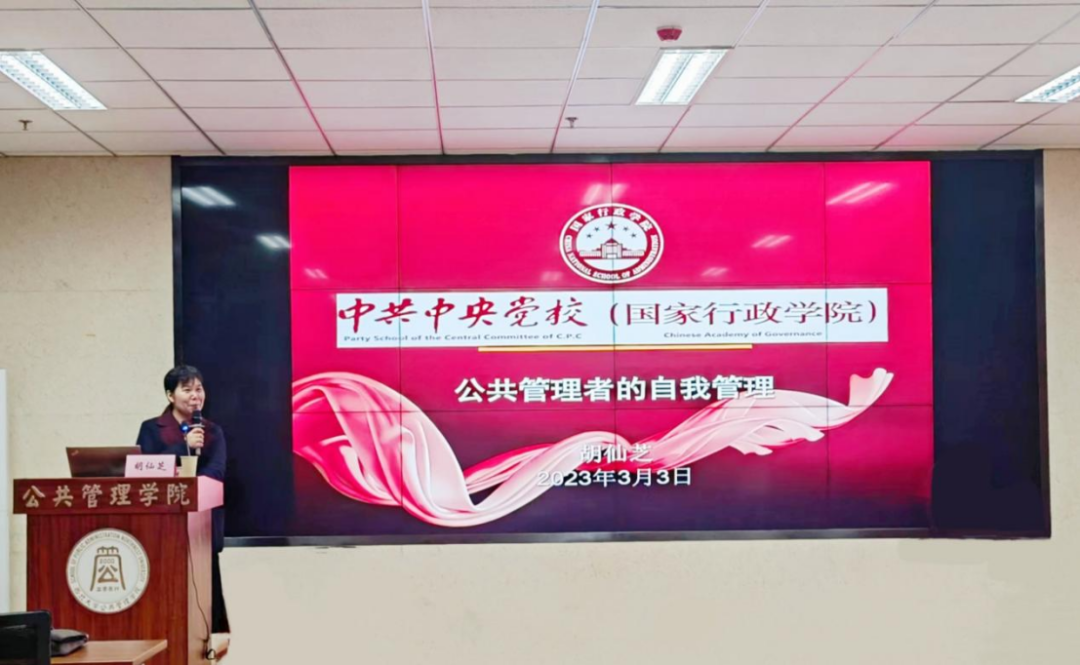 2023年3月3日晚19点到21点,由西北大学社科处、565net必赢(应急管理学院)联合主办的“名家讲坛”长安校区西学楼13层会议室成功举办。中共中央党校(国家行政学院)公共管理教研部胡仙芝研究员受邀作了题为“公共管理者的自我管理”的学术报告。565net必赢(应急管理学院)副院长岳成浩副教授主持了本次讲座。我院100余名教师、研究生及本科生参与了本次讲座。