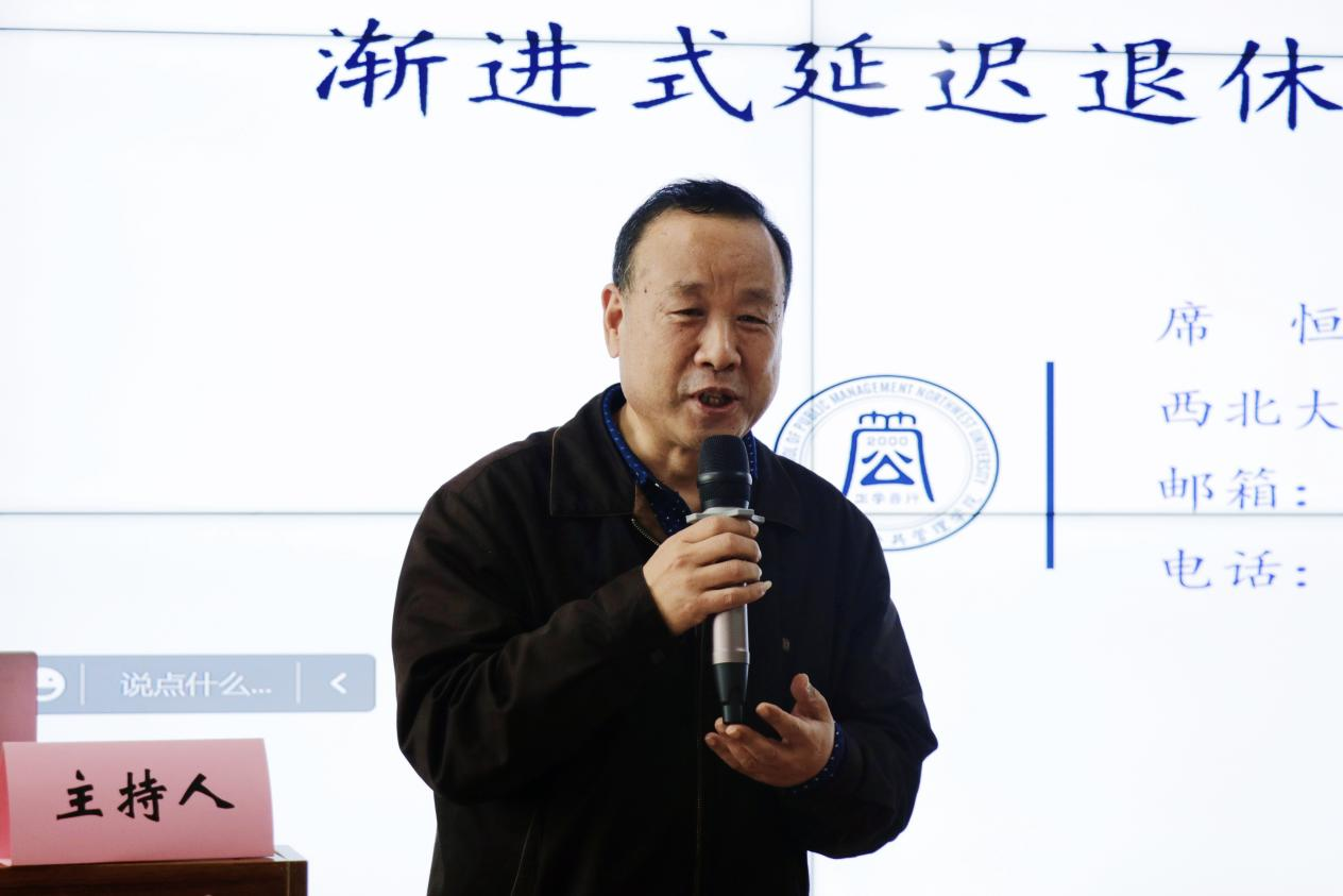 项目首席专家、陕西省“三秦学者”创新团队负责人、中国社会保障学会副会长席恒教授详细介绍了相关研究成果。首先,席恒教授基于不同地区、职业以及行业的人群对延迟退休政策敏感度不同的前提,提出了“渐进式、差异化、有弹性”延迟退休政策制定的总体思路;其次,基于上述思路,席恒教授从劳动力存量与经济竞争活力、就业、收入分配、养老保险基金收支、公众社会预期与社会稳定五个方面对渐进式延迟退休政策的乘数效应、替代效应、诱导效应、累积效应和传递效应进行研究,进一步梳理了渐进式延迟退休政策的三部曲“退休意愿—退休年龄—退休待遇”,并从延迟退休的影响因素与决定机制出发,进行了基于政策合意性与协调性的退休年龄方案研究;最后,席恒教授提出了我国渐进式延迟退休政策方案的支持条件,并构建了缴费型养老保险制度的养老金函数,为延迟退休与养老金政策、生育政策的融合提供了分析思路。
