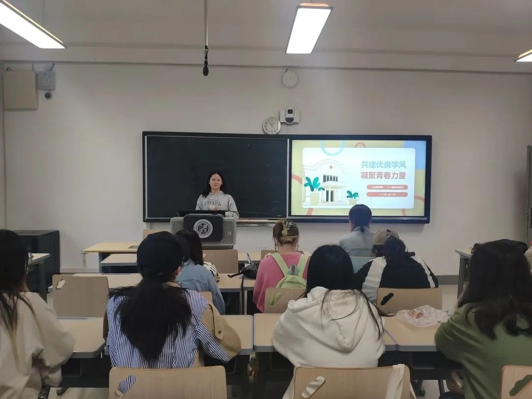 为进一步加强班级学风建设,营造优良学习氛围。2023年5月29日,2021级图书馆学班在6411教室召开“共建优良学风,凝聚青春力量”主题班会。此次班会由班长王萱瑜主持,她以争创优良学风、班风和考风为重点,从课堂考勤入手,着力严明课堂纪律,树立榜样学习典范,努力实现班级的自我教育、管理和服务。