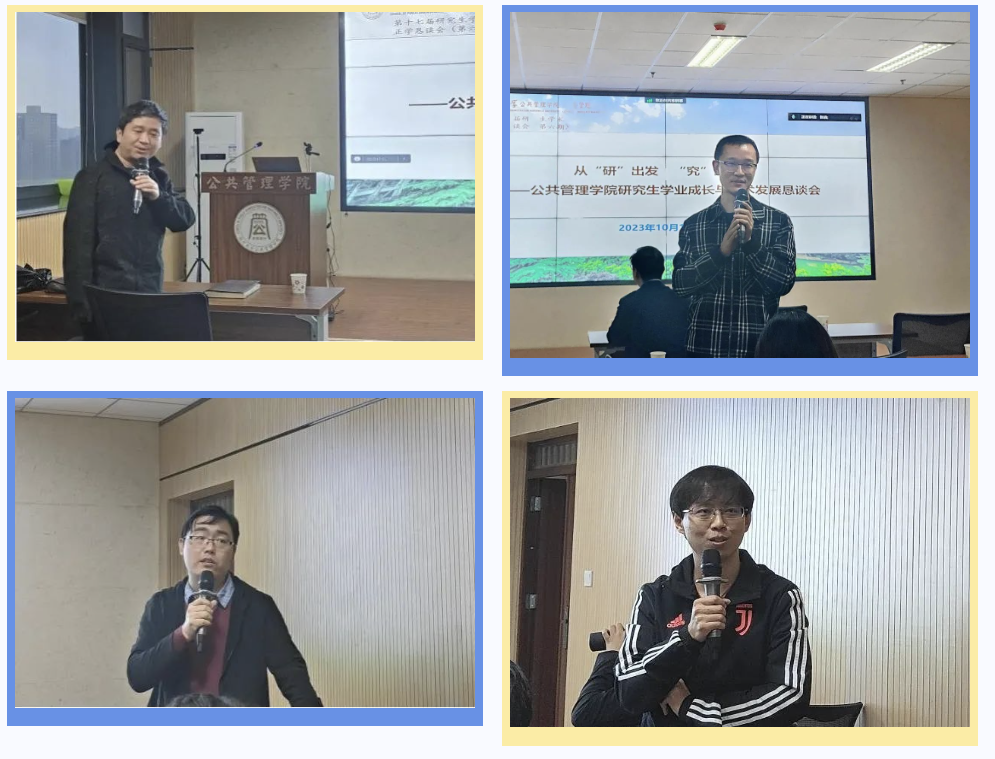 各学科点相关负责人就学生提出的问题进行答复,并给出科研建议。周文光老师针对学生的选题问题,提出要从现实中选、从文献中选,结合自己的兴趣和研究方法进行选题,同时就学业压力排解、兴趣培养给出建议;王铮老师建议同学们在学习与生活中要张弛有度,抓紧时间,认真学习研究方法;聂建亮老师对同学们遵守学校、学院规章制度做出相关要求,建议同学们要主动与导师沟通,积极参与活动;刘鹏老师对学生们研究方向的选择提出建议,在选题时要结合自身兴趣和个人能力,同时也可以把他人的经验和建议考虑在内。