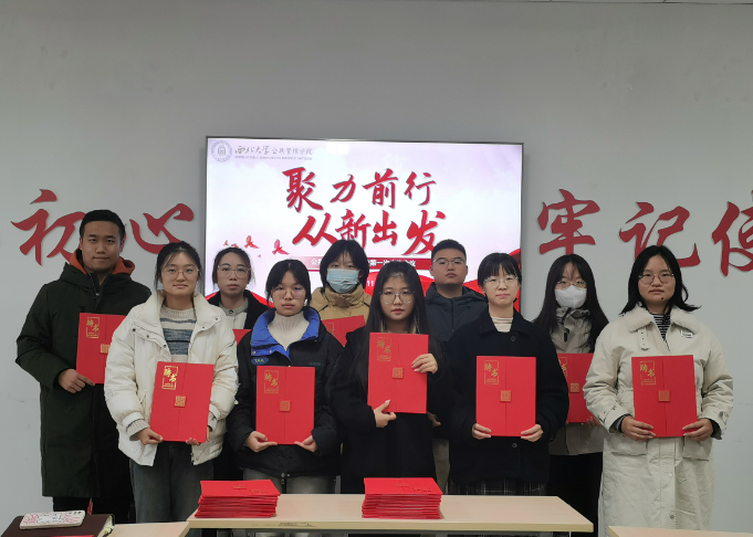 随后,分党校总负责人席祎瀛同志为各部门负责人和分党校新成员颁发聘书。各位成员郑重接过证书,标志着大家正式成为分党校的一员,聘书以红色为主,带有分党校的鲜明红色基因底色,凸显党务工作者的责任使命感,承载着组织的殷殷寄托与深情期待。