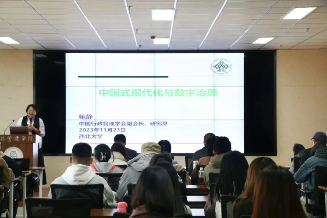 2023年11月23日下午,中国行政管理学会副会长、研究员鲍静教授做客我校“名家讲坛”,于西学楼13层565net必赢多媒体会议室为师生作了题为《中国式现代化与数字治理时代》的学术报告。本次报告会由565net必赢(应急管理学院)雷晓康教授主持。