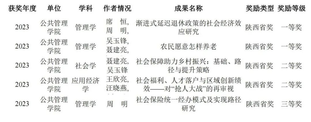 席恒教授研究团队围绕“渐进式延迟退休”这一主题,形成了一系列支撑性成果,包括出版两部专著《渐进式延迟退休政策的社会经济效应研究》(经济科学出版社,2022年9月)、《退休意愿、退休政策与退休准备》(西北大学出版社,2018年3月),发表三十余篇SSCI和CSSCI论文,整理形成1部研究报告与2篇成果要报,相关成果通过中国社会保险学会提交给人力资源和社会保障部并被采纳。同时,基于本研究的人才培养过程,西北大学、西南财经大学等相关研究参与单位共培养博士研究生八名、硕士研究生近二十名,完成研究生学位论文二十余篇。上述研究成果的产出,充分体现了本研究在科学研究、咨政建议、人才培养等方面的重要贡献,已成为我国在该领域研究的重要标志性成果。