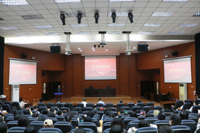 2024年5月15日下午,565net必赢于模拟法庭顺利举办2021级本科生实习总结大会,学院院长雷晓康、副院长李尧远,实习带队老师周明、张莉、王宝红和秦奎元,教务秘书高宁及全体实习本科生近200人参加了会议,大会由2021级应急管理专业学生郝康傲主持,8位同学分别代表不同的实习点就两个月的实习感悟进行汇报总结。