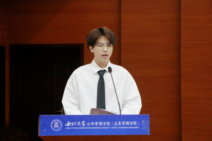 首先,杜佰宸对长安区政府提供的六个实习点的岗位职责进行概述。随后,他详细介绍各岗位的多样化实习内容,强调要将公共精神与社会实践相融合,落实学思结合、砥砺前行的实践思路。接着,他以领悟实践厚度为主题分享实习收获,提到此次实习于同学们而言是一种身份的转变与职业观的树立,对于即将做出未来选择和职业规划的同学们影响深远。最后,他代表实习生对实习期间伸出援手的每一个人表示真挚感谢。笃行致远,惟实励新,希望同学们不踌躇于过去,以更加热情的态度迈向漫漫前程。