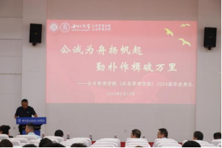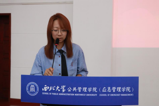 本科生毕业生代表王卓雅同学发言。王卓雅同学回忆了自己在西北大学的本科四年岁月,并对自己在这四年中的学生工作以及社会实践工作的感受进行了分享,接着表达了自己对学院温情关怀和悉心栽培的感谢,最后表达了对学院各位师生的美好祝福。