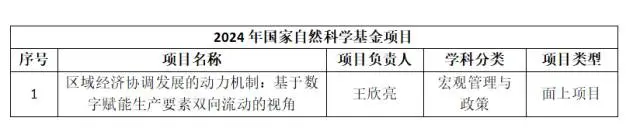 本年度学院共有6位教师提交了国家自然科学基金申报书,学院组织五轮专家同行的论证会对申报书点评指导,最终1人获批面上项目。具体项目为:《区域经济协调发展的动力机制:基于数字赋能生产要素双向流动的视角》。