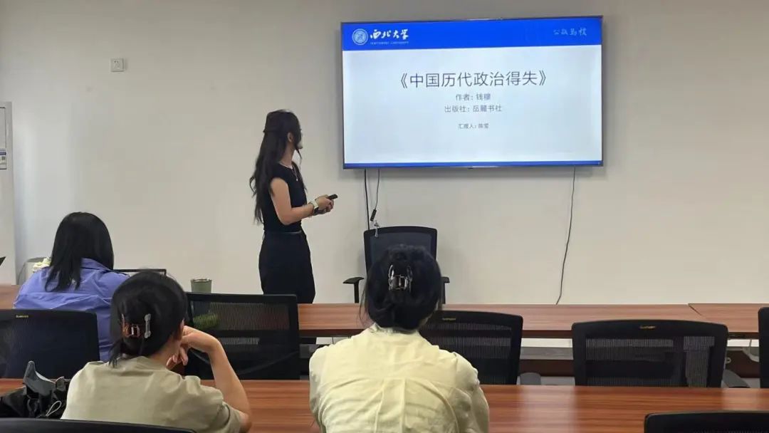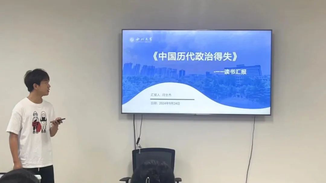 2023级行政管理专业硕士研究生闫士杰分享的书籍为钱穆的《中国历代政治与得失》,他分别从写作背景、思路逻辑、主要内容和不足和启示这四个方面进行了分享。首先对作者以及写作背景进行了简单介绍。其次,在梳理了全书章节和内容后,他从中国汉、唐、宋、明、清五代的政府组织、百官职权、考试监察、财经赋税、兵役义务等政治制度作了概括与比照,叙述因革演变,指陈利害得失。最后,从历史自信方面,尽管以现代观点来看,皇帝世袭是不可接受的,但放在当时,中国作为农业国,立国规模之大远超西方历史上的希腊、罗马等国,皇帝世袭是不得已的办法,并且除了皇位,政府里没有第二个职位可以承袭,这是中国传统政治的先进之处。明白了这一点,我们便能对“历史自信”多了一分笃定。