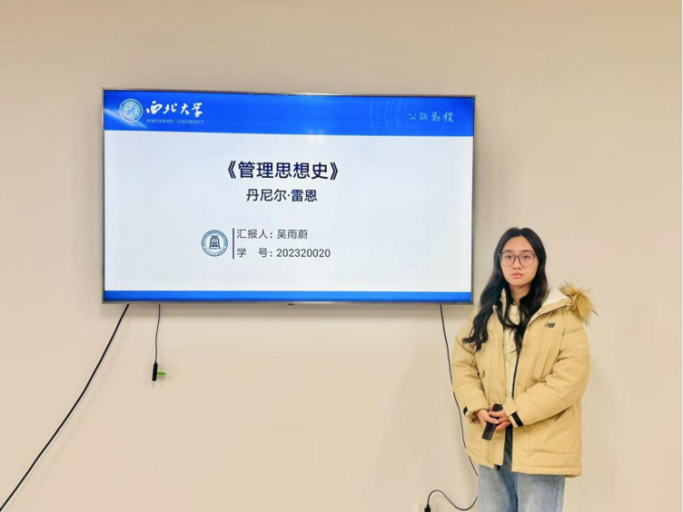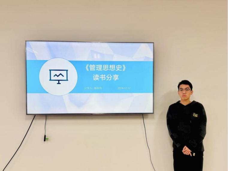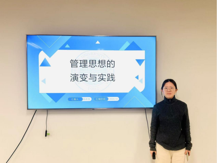 张易知学长对陈彬恺的汇报做出点评。汇报内容全面且深入,通过对管理思想历史的系统梳理,为大家提供了清晰的管理思想发展脉络。不仅详细阐述了各个时期的管理思想及其代表人物,还深入分析了管理思想与社会环境之间的相互作用,使大家能够更深刻地理解管理思想的本质和演变过程。