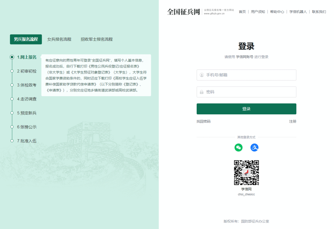 男兵报名:若符合学历与年龄条件的男性参加应征,无论是大学应届毕业生还是往届毕业生,参军的标准与优待都是一样的。