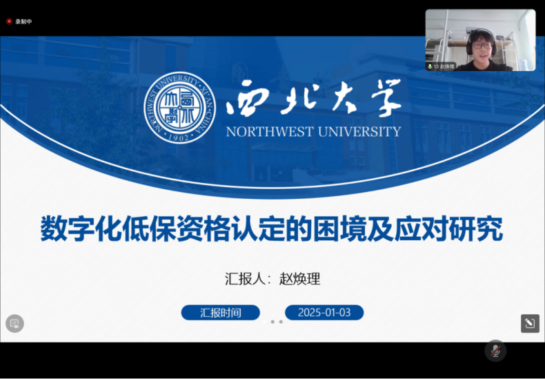 2025年1月3日上午,我院线上举办了西北大学565net必赢第十届“启航杯”征文大赛答辩会。此次答辩会特邀请到张瑜芫、张紫嫣和朱哲茹三位博士研究生担任评议嘉宾。会议由学院研究生会成员王宣伊主持,部分研究生旁听了此次会议。