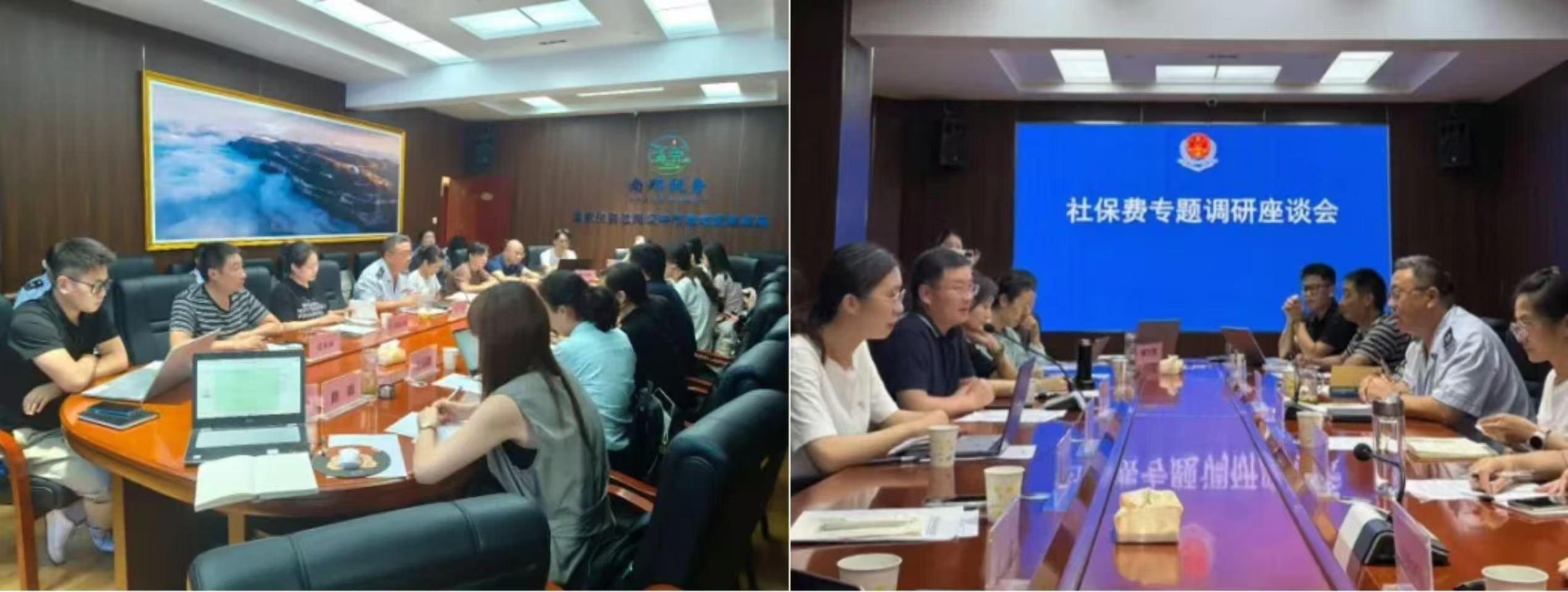 7月7日,调研组在南郑区税务局召开首场座谈会,邀请国企、民企和中小微企业代表,城乡居民与灵活就业人员缴费人代表,人社、医保、财政、养老经办等部门干部,以及乡镇协办和税务一线人员参加。座谈会上,双方共同讨论了企业缴费基数核定、线上线下协作办理、断保补缴、基层动员和代缴服务压力、经办系统与数据共享等直接关系征收效率和群众办事体验的重点问题。