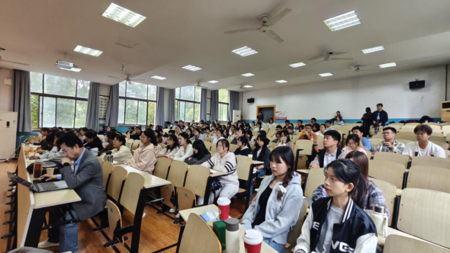 李姗姗副教授以“‘挑战杯’竞赛的选题技巧与赛点捕捉”为题展开讲解。她首先细致区分“大挑”和“小挑”的区别,以优秀获奖作品为例,提出耦合赛事导向、结合学科优势、融入地方特色的选题建议。随后由浅入深、层层递进,从作品题目、文本撰写、PPT制作等角度系统介绍细节打磨的方法和要点,帮助同学们提高作品的创新性和竞争力。