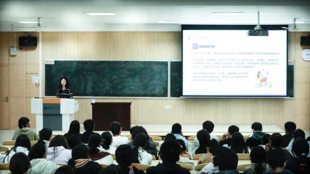 在“电信诈骗的防范处理措施”部分,杨老师重点讲解了相关的防范和处理措施,教导同学们要时刻提防那些来路不明的电话和信息,对于可疑的信息要谨慎对待,不轻易点击陌生链接或者透露个人信息。一旦不幸遭遇电信诈骗,应第一时间采取有效的应对措施,并且及时报警,以便警方能够迅速介入调查,将电信诈骗的风险和危害降到最低限度,最大限度地保护自己的合法权益不受侵害,保障自身信息安全与财产安全。