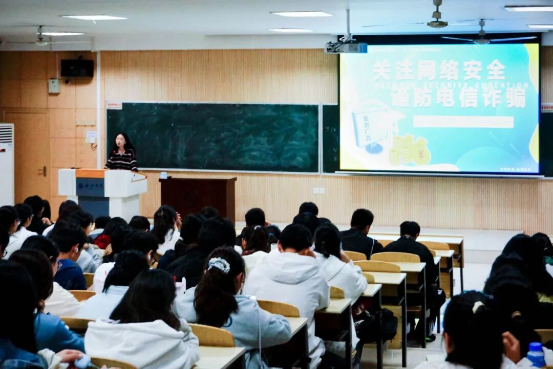 随后,杨老师围绕“关注网络安全,谨防电信诈骗”这一核心主题,着重强调了电信防诈骗网络安全教育的重要性和紧迫性。杨老师明确指出,在当今信息高速发展的时代,互联网在为我们的生活带来极大便利的同时,也潜藏着不容忽视的巨大风险。近年来,电信网络诈骗分子十分猖獗,他们利用各种手段和技术,给我们的日常生活造成了极为严重的影响和困扰。作为刚踏入大学校园的新生,同学们正处于一个全新的环境,需要尽快树立高度的防范意识,彻底杜绝任何侥幸心理的存在,做到未雨绸缪,防患于未然。为此,杨老师从“常见诈骗行为科普”“电信诈骗实例”“电信诈骗的防范处理措施”这三个重要的方面,对电信防诈骗内容进行了全面而系统的教育。