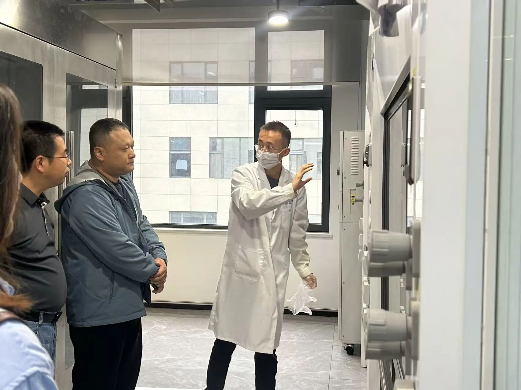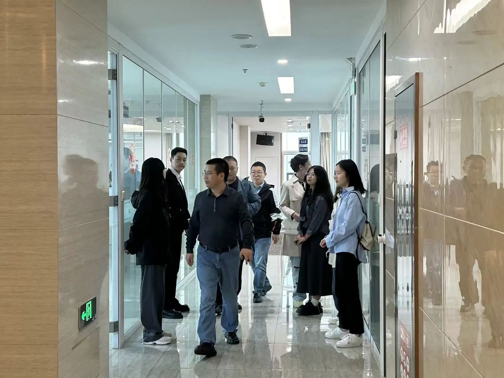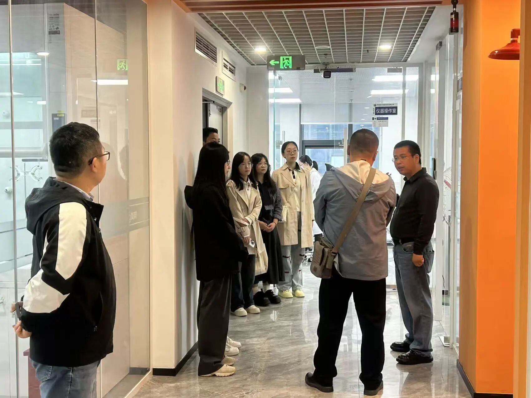 抵达美邦药业集团后,在靳部长与孙部长的带领下,师生首先开启了三座办公及研发大楼的参访行程。两位部长详细介绍了各楼宇的功能布局、团队架构及办公场景,行政楼内规范化的流程管理、研发办公楼里“产学研用”融合的工作模式,让学生直观感受到制药企业高效、严谨且富有创新活力的运营氛围。