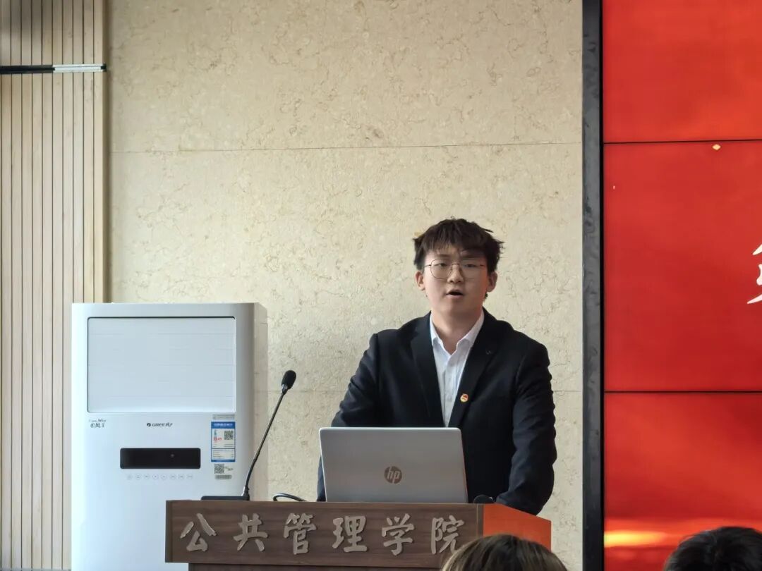 史东林同学感谢领导、老师的信任与支持,向为学生会付出的学长学姐表达敬意,承诺将以高标准要求自己,带领团支部服务同学、助力学院发展,并扼要汇报工作规划: