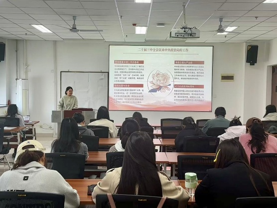 为深入学习贯彻党的二十届四中全会精神,切实把支部成员的思想和行动统一到党中央决策部署上来,2025年10月26日,研究生联合党支部于西学楼1609教室组织全体党员开展专题学习活动,由纪检委员王紫寒同志领学,推动全会精神入脑入心,引导支部成员在学思践悟中汲取奋进力量。