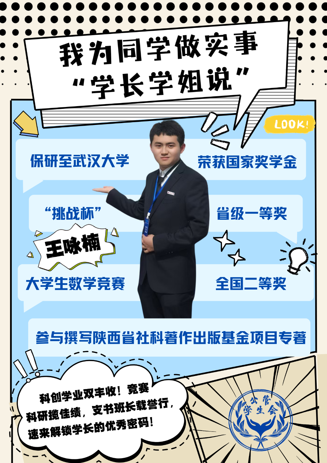 王咏楠认为保研的重要前提是成绩排名,要努力提升必修课成绩,并在期末周集中精力对重点内容进行复习。还提出要积极尝试参与专业相关的科研项目,发表期刊或会议论文,完善调研报告。同时,他强调要提高英语成绩,多参加大学生英语竞赛。最后王咏楠为大家介绍了推免流程,并分享了收集相关信息的方法和面试小技巧,祝愿大家成为更好更完整的自己!