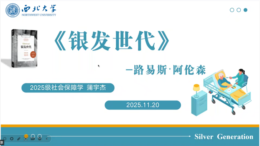 2025级社会保障专业硕士研究生蒲宇杰分享的书籍是美国医学教授路易斯· 阿伦森的著作《银发世代》。他从本书视角、核心观点、个人思考与现实意义四个方面,系统阐述了该书对公共管理与社会保障领域的启发。首先,他从独特视角切入,指出阿伦森教授融合医学、人文与社会老年学的跨学科视野,打破了传统“生物医学”单一叙事,将老龄化问题置于更广阔的生命历程与社会结构之中,引导读者重新思考“老年”的本质。他重点分析了作者提出的颠覆传统认知的三大观念:老年并非“问题”,而是“时期”;批判“器官仓库”模型,呼吁“老年病学模式”;停止对“永葆青春”的迷恋,积极地为自己的“银发世代”做规划,并结合当前中国正在推进的医养结合、智慧养老、长护险试点等政策,基于社会保障和社会医学视角,提出了“从成本中心到投资视角转变”与“从治病到医人”的个人观点。他认为医学应回归“人的整体”,社会保障也应从被动补偿转向主动赋能,通过预防健康、终身学习与社会参与,释放老年群体的潜在价值。最后,他总结了该书的现实指导意义,认为《银发世代》不仅启发我们在制度设计中融入生命历程视角,更呼吁构建一个“赋能型老龄化社会”。在政策、医疗、社区与科技等多维度协同中,实现从“生存保障”到“全面发展保障”的转型,保障个体在老年阶段的“生命质量”与“人生意义”。