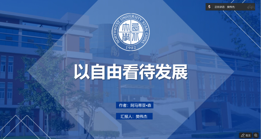 施定涛博士对樊伟杰同学关于阿玛蒂亚·森《以自由看待发展》的分享给予高度肯定,认为其分享结构清晰、逻辑严谨,既精准把握了该书“发展即扩展实质自由”的核心要义,跳出传统GDP导向的发展认知,深刻阐释了实质自由的多元内涵、工具性价值及发展公平性等关键观点,又通过印度喀拉拉邦发展模式、中国脱贫攻坚实践等典型案例让跨学科的专业理论通俗化、具象化,充分展现了该书在学术研究与公共政策指导中的双重价值,既体现出樊伟杰同学扎实的理论功底与跨学科思维能力,也为读者从自由视角理解发展本质、探索行政管理与公共治理的优化路径提供了深刻启发。
