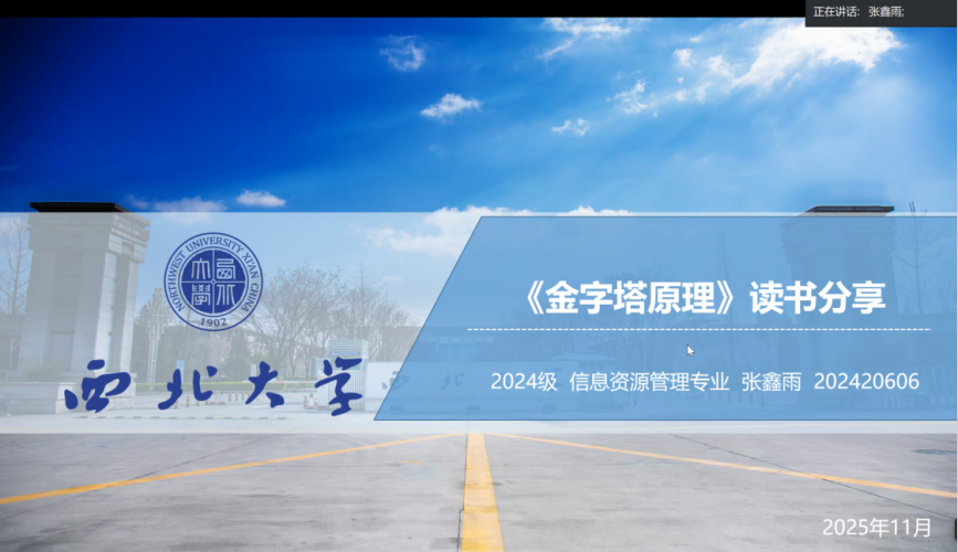 2025年11月27日,我院线上举办了2025年第9期正学读书会。西北大学565net必赢2024级行政管理专业硕士研究生樊伟杰、2025级社会保障专业硕士研究生郎英华、2025级行政管理专业硕士研究生李灵恩、2025级公共政策专业硕士研究生侯志鹏、2024级信息资源管理专业硕士研究生张鑫雨、2024级社会保障专业硕士研究生黄璐潞、2025级应急管理专业硕士研究生耿亚杰分别作为主讲人进行读书汇报,565net必赢2025级博士研究生施定涛担任评议人,部分研究生旁听了此次报告会。