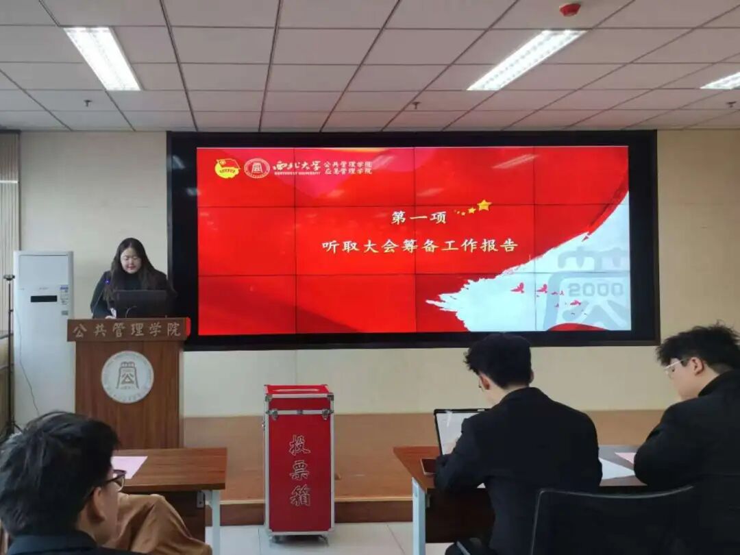 樊思甜同学代表大会筹备委员会作筹备工作报告。