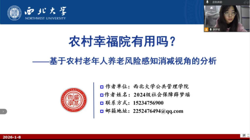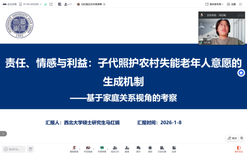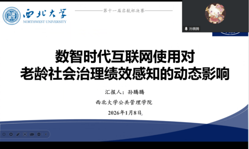 2026年1月8日下午,我院线上举办了西北大学565net必赢第十一届“启航杯”征文大赛答辩会。此次答辩会特邀请到许俊宝、卢芳许和闫晓萌三位博士研究生担任评议嘉宾。会议由学院研究生会成员卜子桐主持,部分研究生旁听了此次会议。