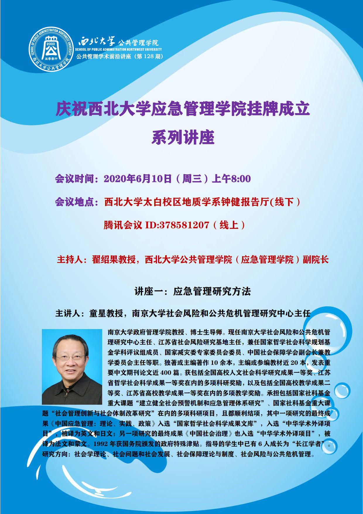 西北大学应急管理学院成立系列讲座通知