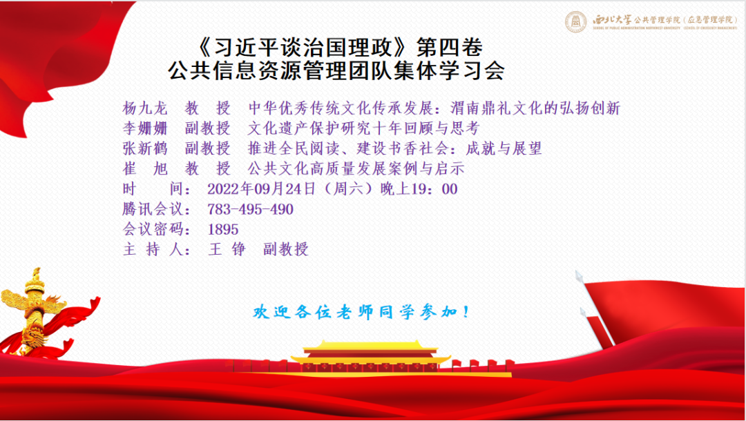 会议预告 | 《习近平谈治国理政》第四卷公共信息资源管理团队集体学习会