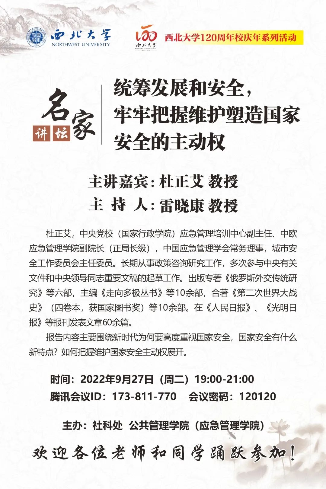 会议预告 | 名家讲坛:统筹发展和安全,牢牢把握维护塑造国家安全的主动权