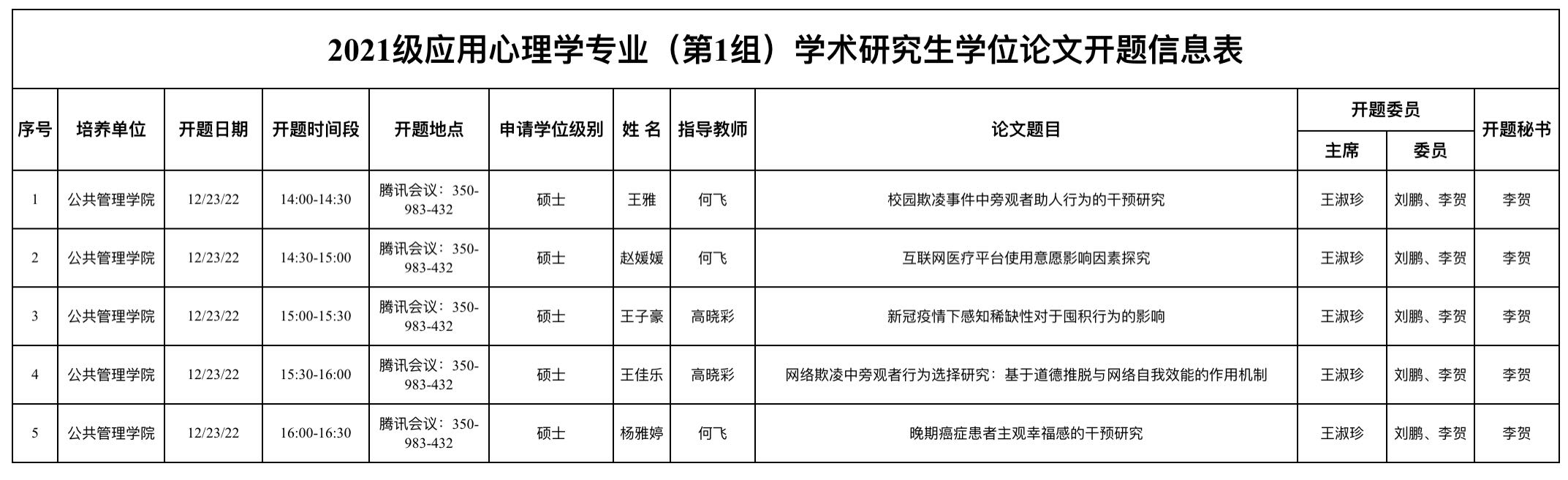 2020级社会保障学专业(第1组)学术研究生学位论文预答辩信息表