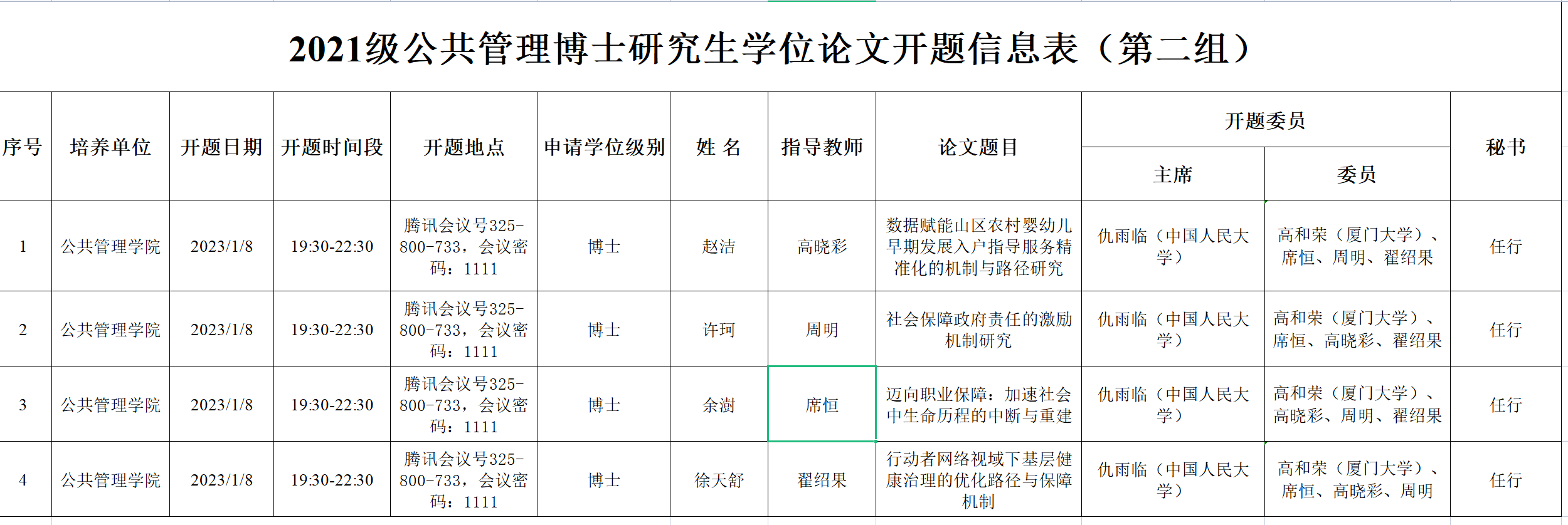 2021级公共管理博士研究生学位论文开题信息表(第二组)
