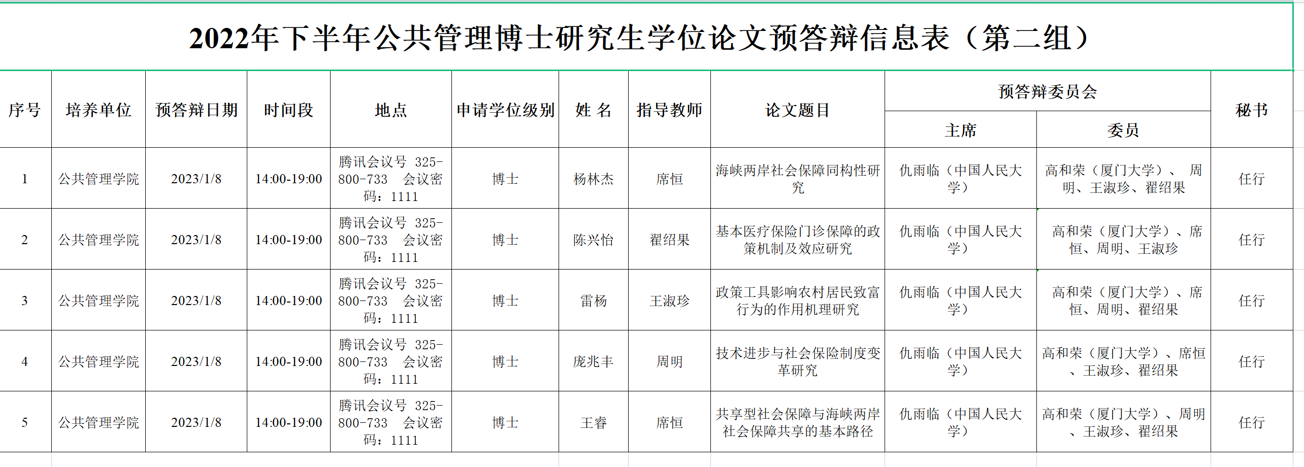 2022年下半年公共管理博士研究生学位论文预答辩信息表(第二组)