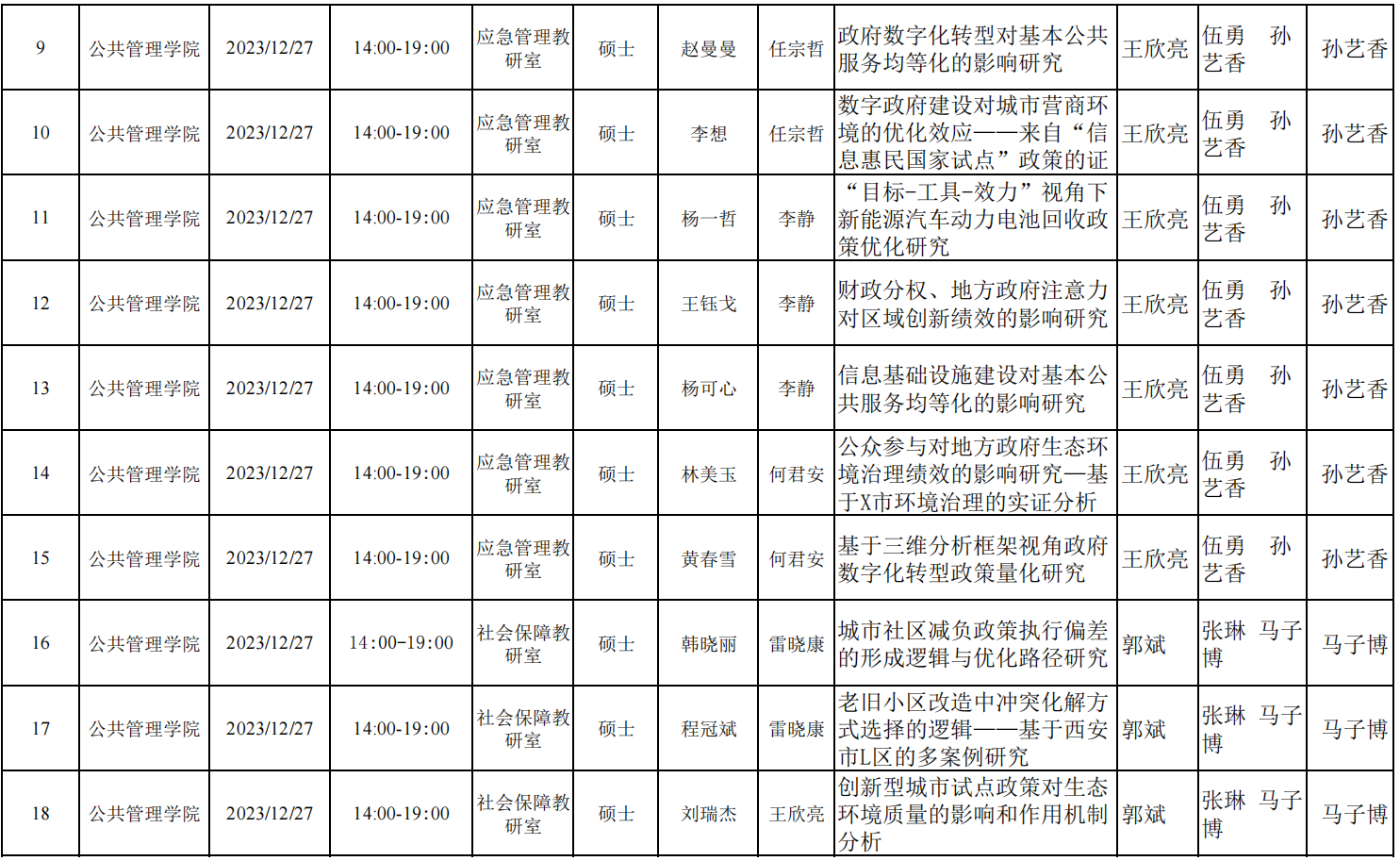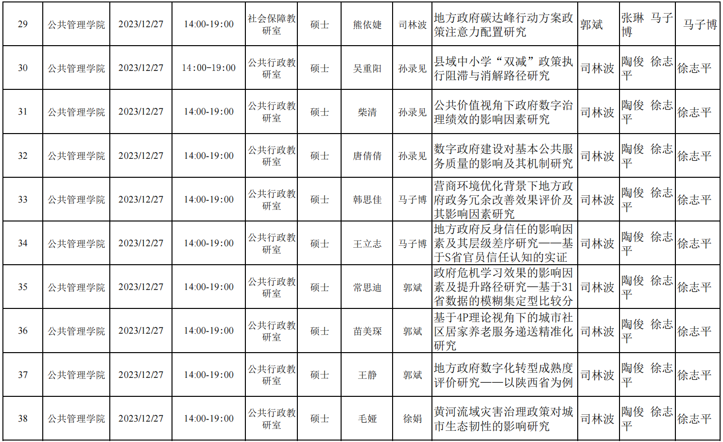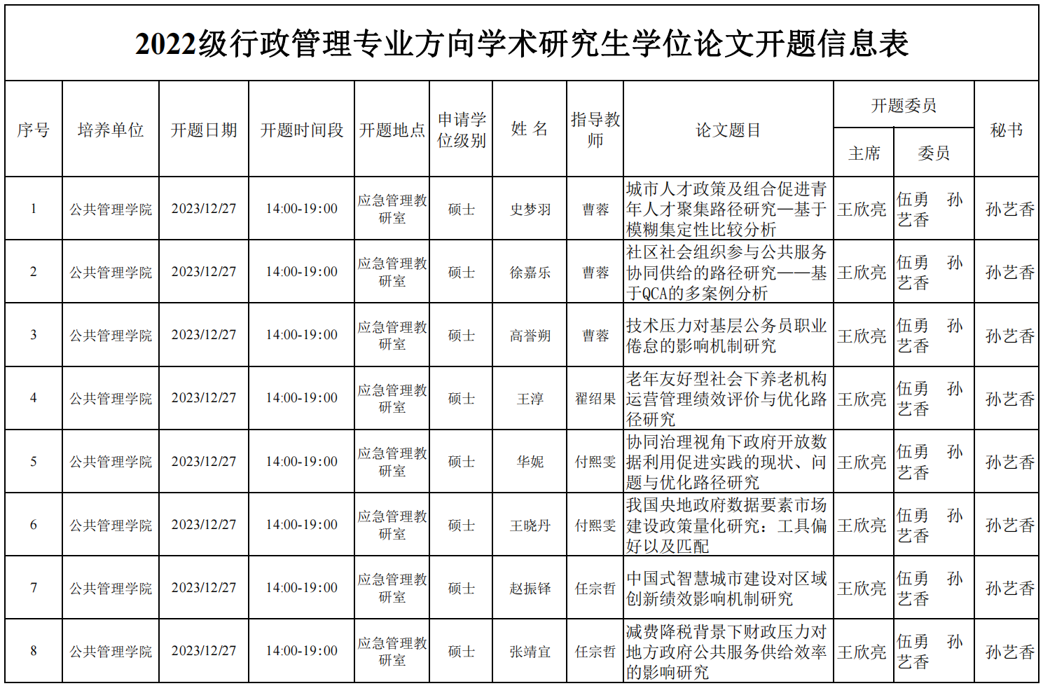 2022级行政管理专业方向学术研究生学位论文开题信息表