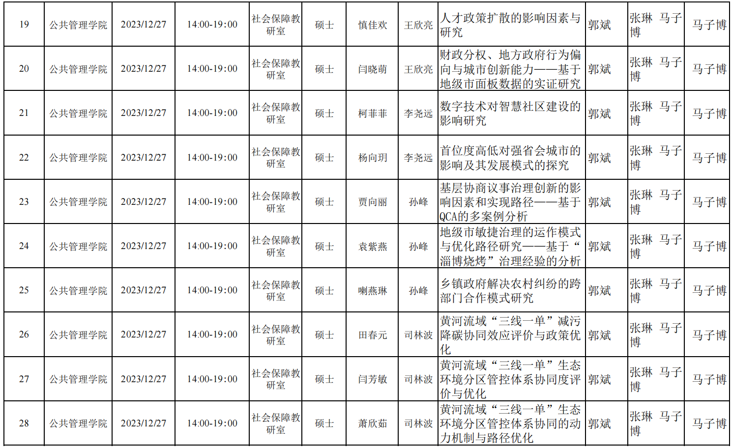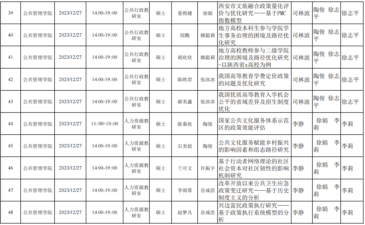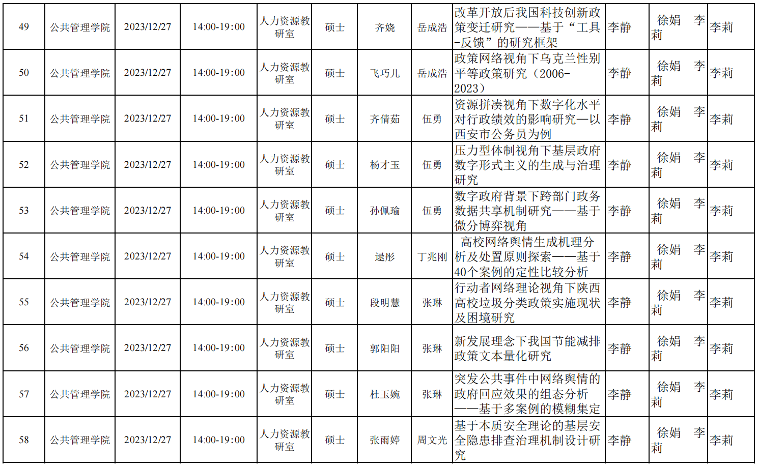 2022级行政管理专业方向学术研究生学位论文开题信息表