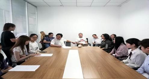 高新区管委会实习交接情况:高新区管委会社会管理局负责人李姚娜、秘书孙静向实习学生简单介绍高新区管委会的基本情况以及未来实习岗位的分配情况,学生们认真聆听并积极询问相关问题,负责人也一一耐心解答。