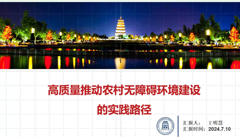 王明慧同学汇报的题目是《高质量推动农村无障碍环境建设的实践路径》,汇报首先基于政策语境对无障碍环境建设政策进行概述,接着指出农村无障碍环境建设存在的问题,包括无障碍改造投入少、社会及专业力量不足,无障碍设施不规范、监督评估机制不健全,无障碍设施不规范、监督评估机制不健全。最后,王明慧同学提出了高质量推动农村无障碍环境建设的路径,包括提高宣传教育力度、转变无障碍理念,制定细化地方标准、推进无障碍改造,加大资金投入力度、促进社会组织参与,完善监测评估机制、提高适老化改造服务质量,加强人才培养建设、加快科技创新研发。