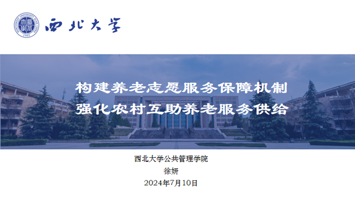 徐妍同学汇报的主题是《构建养老志愿服务保障机制,强化农村互助养老服务供给》。首先介绍了农村互助养老的定位。第一,提升我国养老服务高质量发展水平的重点和难点在农村。第二,农村互助养老是我国农村社会化养老模式的重要组成。其次,介绍了志愿服务赋能农村互助养老服务供给成效。第一,志愿服务制度化建设,赋能互助养老服务环境不断优化。第二,志愿服务队伍组织化发展,赋能互助养老服务力量持续壮大。第三,志愿服务形式多样化,推进赋能互助养老服务内容逐渐丰富。第四,志愿服务资源协同化整合,赋能互助养老服务效果日益显著。再次,介绍了养老志愿服务保障机制存在的问题,主要有以下几个方面:第一,激励配套不足,激励体系保障措施乏力。第二,评价标准简单,评价机制标准化建设滞后。第三,配套机制缺失,激励与评价机制联动失效。针对存在的问题,徐妍同学提出了针对性的对策建议,即构建内外联动机制衔接的养老志愿服务保障机制。第一,实施分类动员,激活养老志愿服务的内生动力。第二,强化激励机制,引入养老志愿服务的外部力量。第三,完善评价机制,提升养老志愿服务的评价效果。第四,加强机制衔接,实现养老志愿服务的高质量发展。
