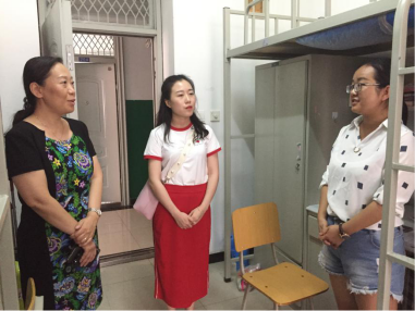 9月4日下午,565net必赢院长曹蓉、副院长雷晓康、学工办辅导员杨嘉仪、苏林与研究生会的同学一起到新生宿舍进行了走访活动。