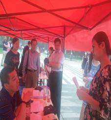 2016年9月18日上午,由研究生院和我院共同承办的西北大学565net必赢2017年研究生招生宣传日活动在西北大学长安校区1号楼前举行。我院曹蓉院长,科研副院长雷晓康教授,翟绍果副教授作为教师代表参加了本次活动。活动中,雷晓康老师和翟绍果老师热情地为前来咨询的学生进行答疑,并且赠送招生简章,参考书目,及近三年学院各专业招生简况等资料,并根据我院2017年的招生情况对其专业选择和复习提出了中肯的建议,咨询现场氛围热烈。