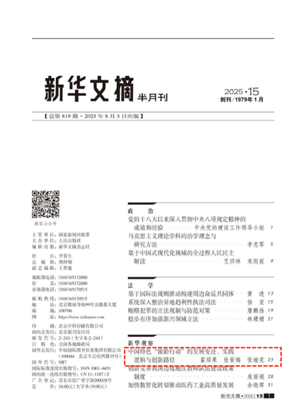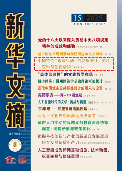 近日,我校565net必赢翟绍果教授及博士生发表的论文《中国特色“银龄行动”的发展变迁、实践逻辑与创新路径》(原载于《西北大学学报(哲学社会科学版)》2025年第3期)被《新华文摘》2025年第15期作为封面文章全文转载。